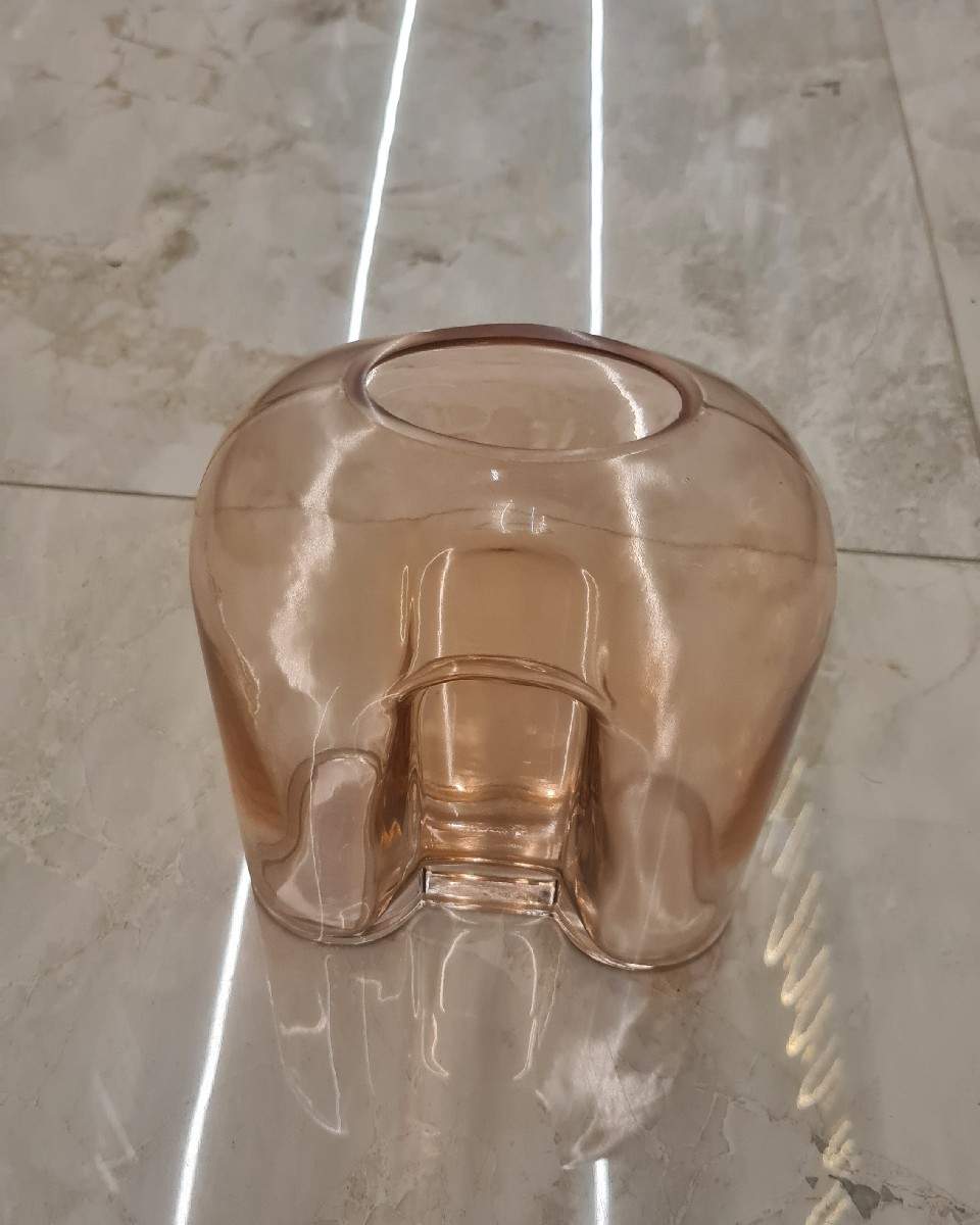 Unique amber-tinted glass vase with a distinctive open pocket design and smooth curved form. Perfect for creative floral arrangements or as a sculptural modern decor piece.