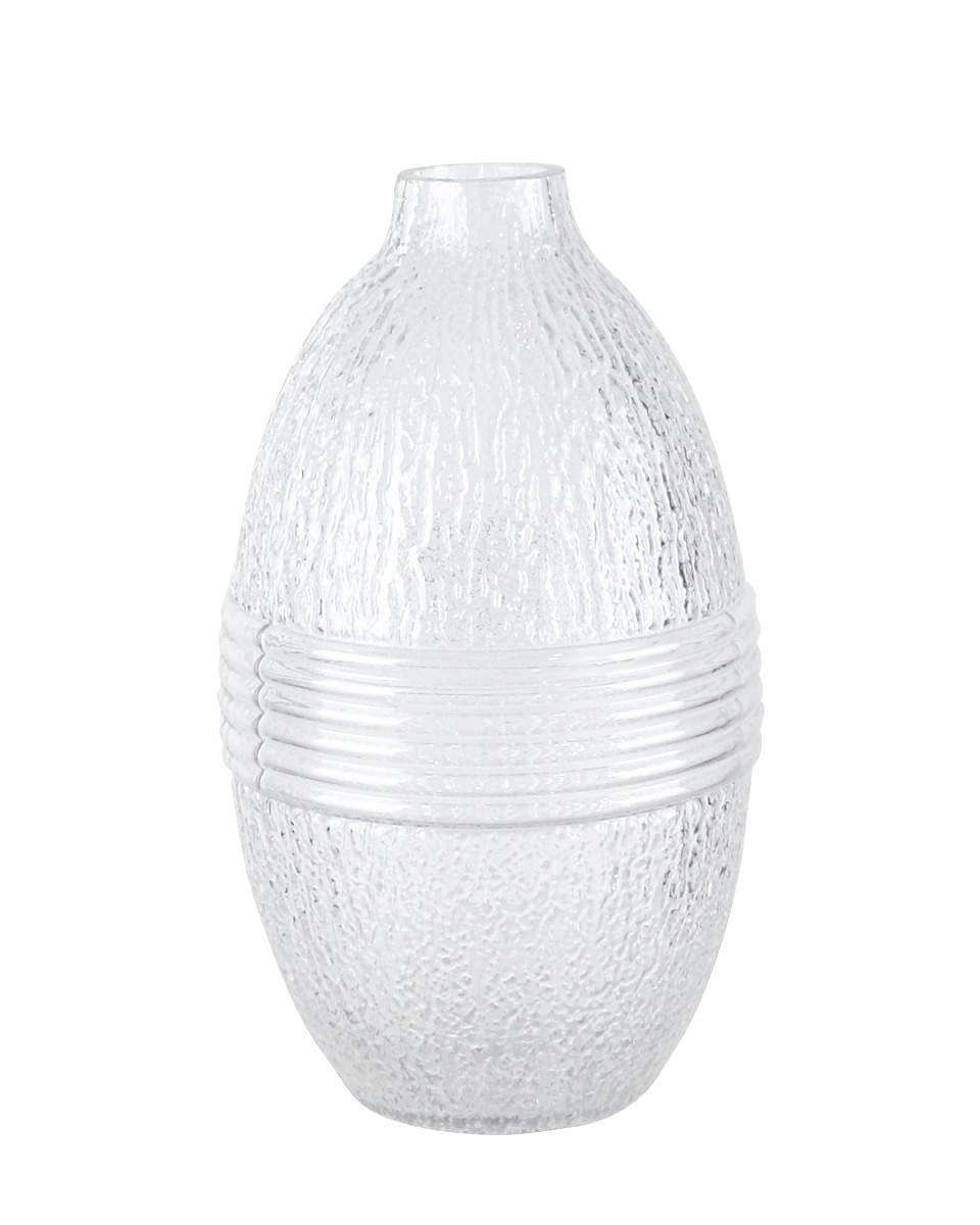 Elegant rounded vase featuring a frosted, ripple-textured surface and sleek silver accent rings around the center. A sophisticated blend of organic texture and modern metallic glamour.