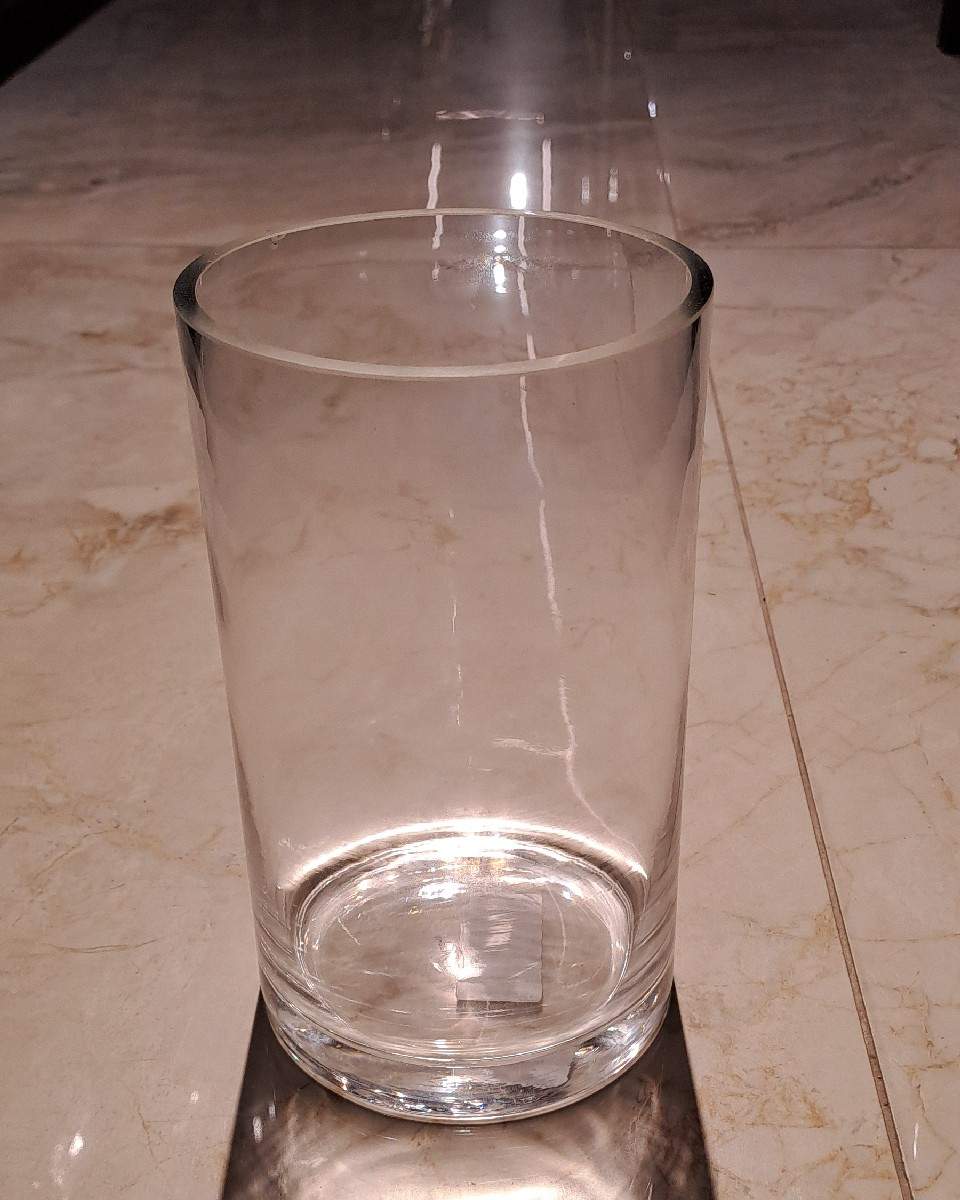 Classic clear glass cylinder vase with a clean, straight-sided design and thick base. Versatile for everyday floral arrangements, candles, or decorative displays.
