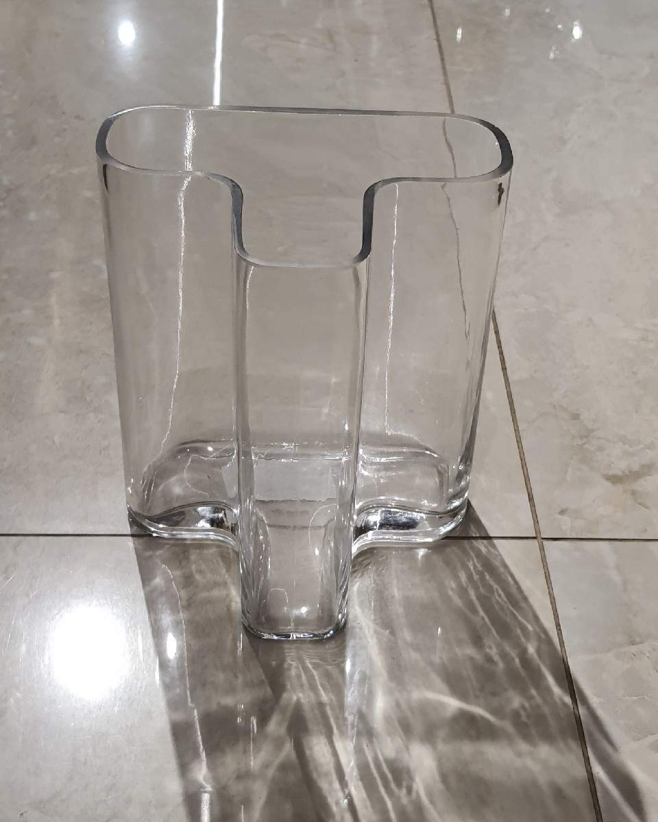 Unique, sculptural clear glass vase with a bold U-shaped design and three open sections. Perfect for contemporary floral arrangements or as a striking minimalist decor piece.