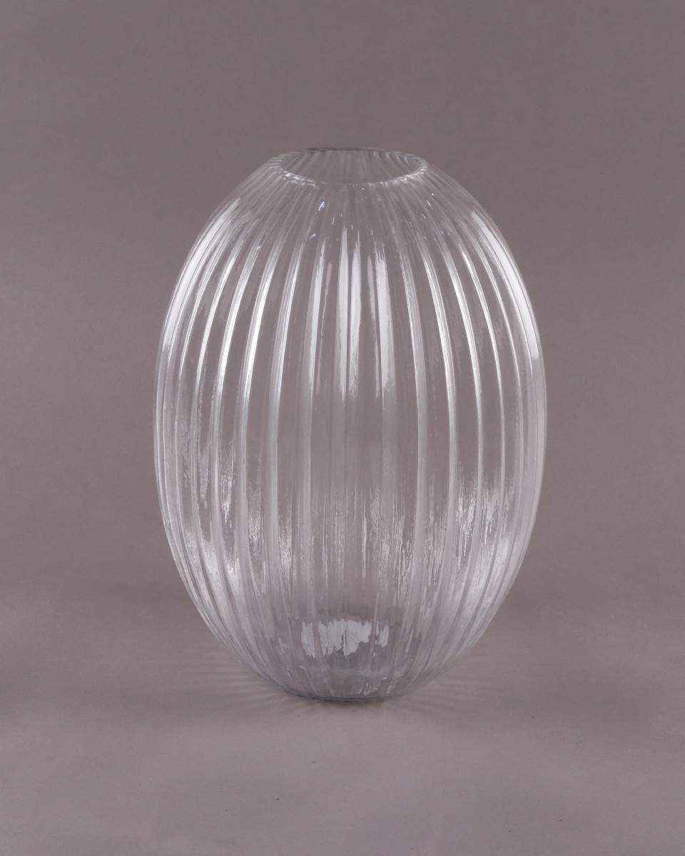 Clear spherical glass vase with elegant vertical ribbing. A timeless, modern piece ideal for flowers, candles, or standalone decor.