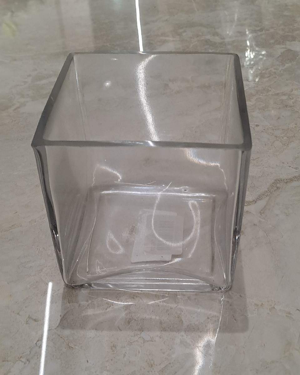 Modern clear glass cube vase with a subtle smoky gray tint. Sleek and contemporary, ideal for minimalist floral displays or stylish standalone decor.