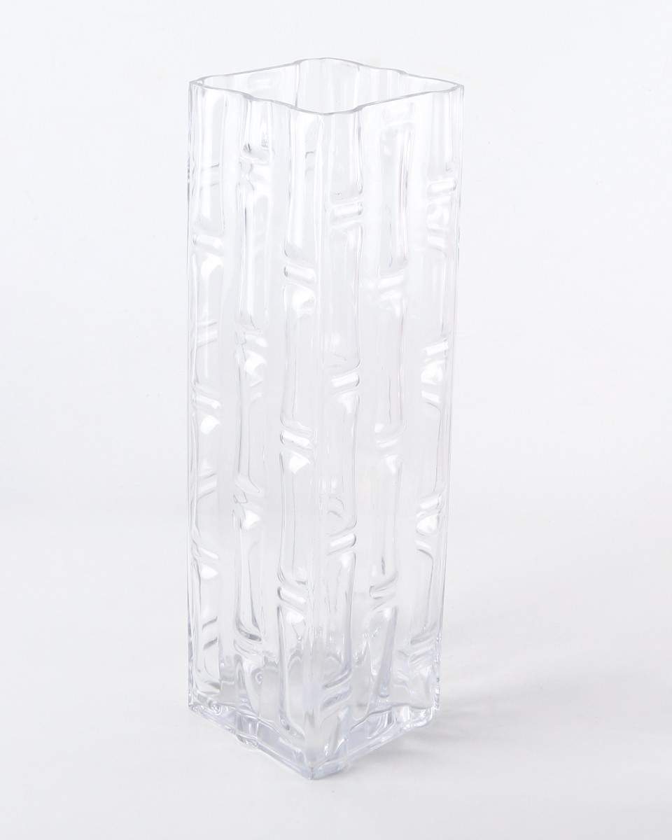 Tall, cylindrical clear glass vase featuring a playful raised bamboo stalk pattern. A fresh, organic twist on modern design, perfect for lush greenery or bold floral arrangements.
