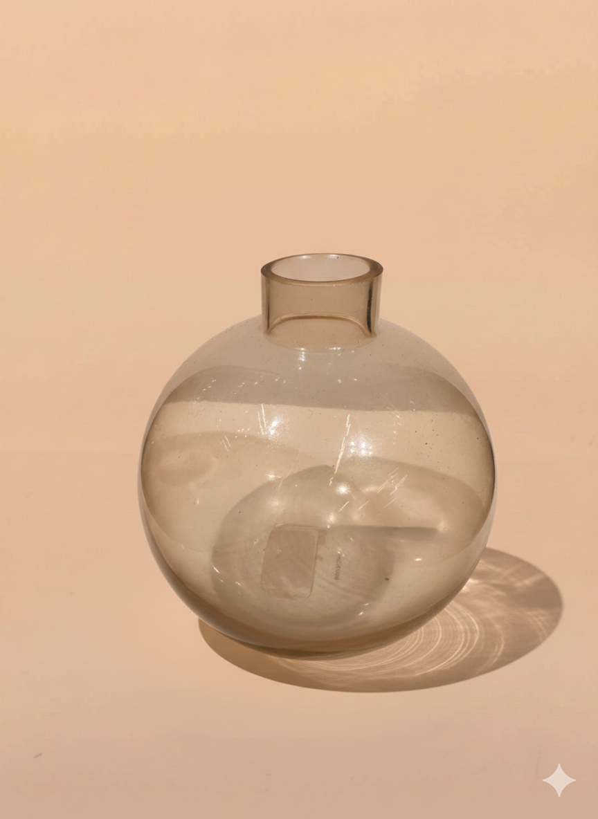 A warm, translucent amber glass vase with a soft rounded body and narrow neck, perfect for minimalist floral arrangements or as a standalone sculptural piece.