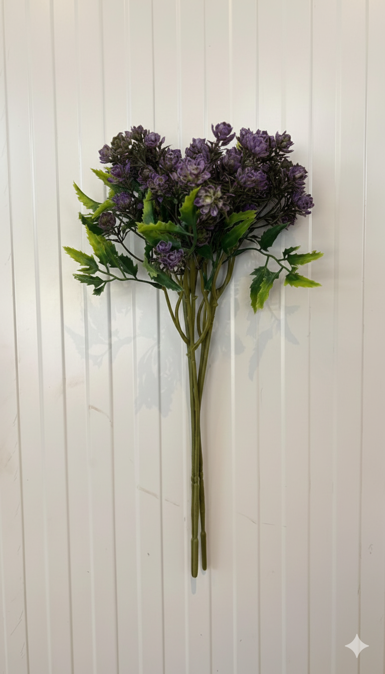 Realistic artificial statice bush with dense clusters of tiny purple blooms and green foliage. Great for adding texture and lasting color to arrangements, wreaths, or home décor.