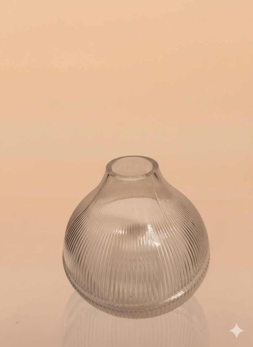 Vintage-style clear glass lamp shade with fine vertical ribbing and a flared neck, perfect for pendant lights or classic fixtures.