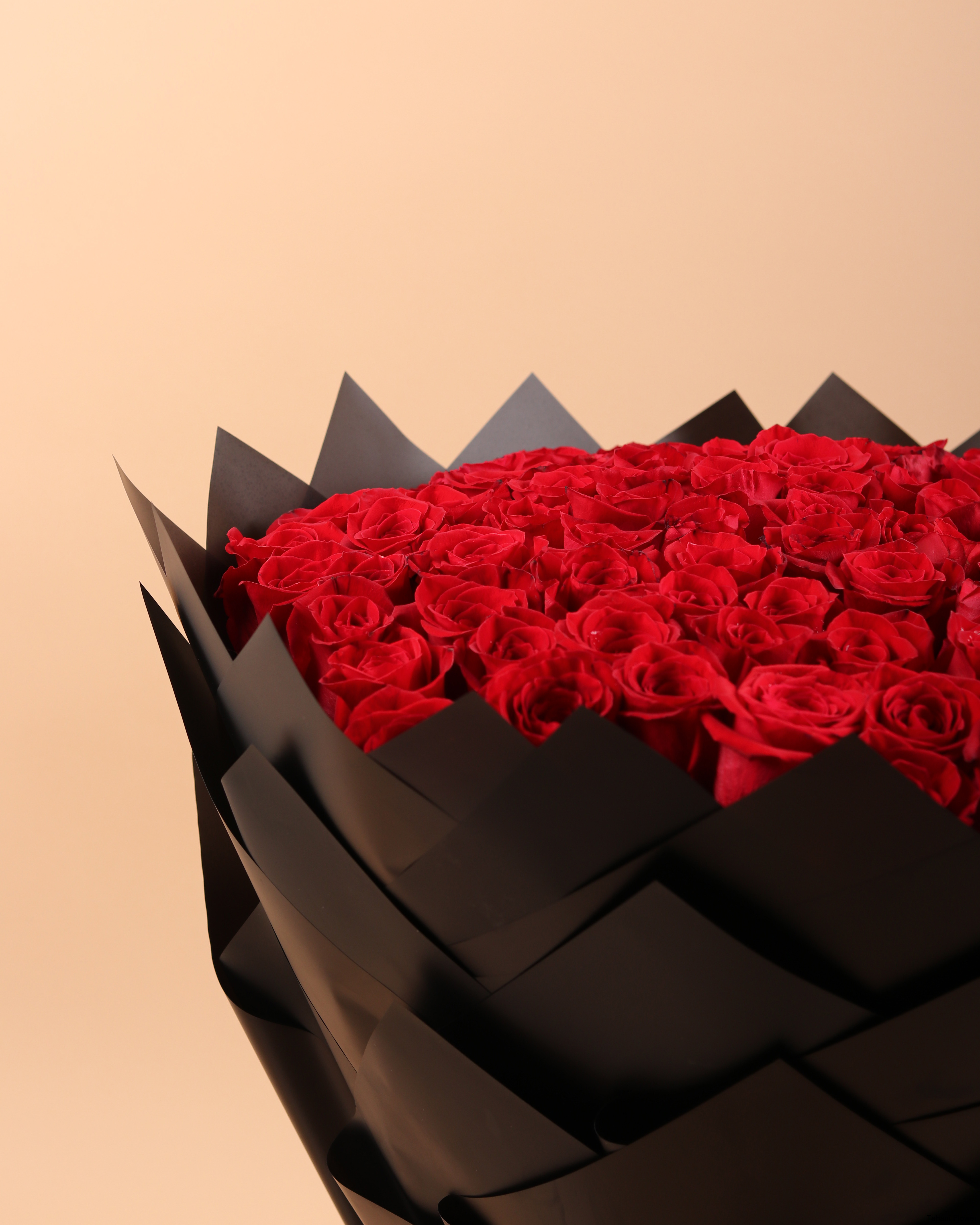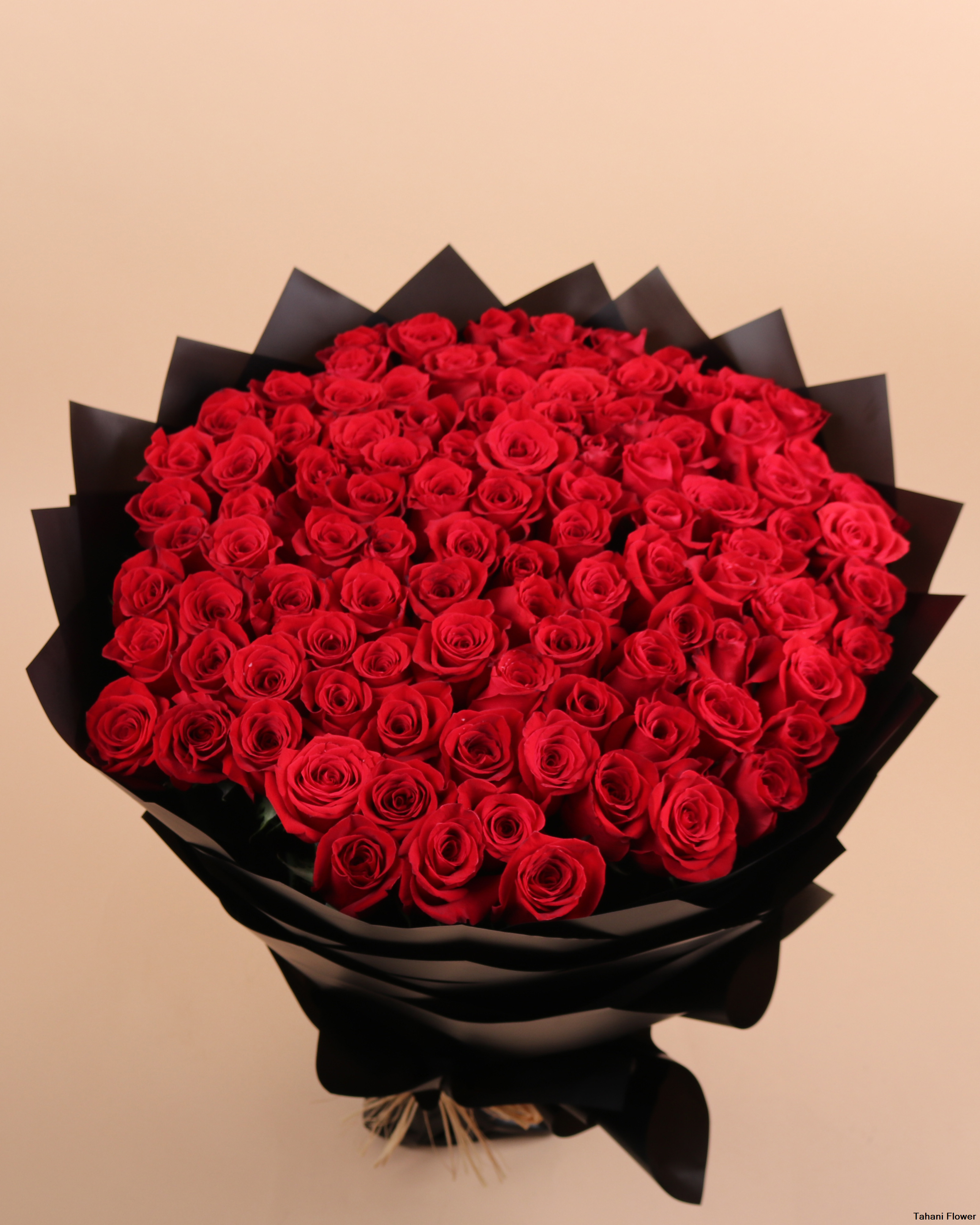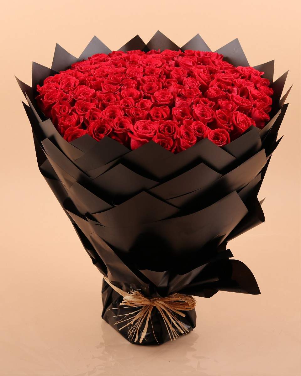 100pcs red roses, spong and black wrapper.