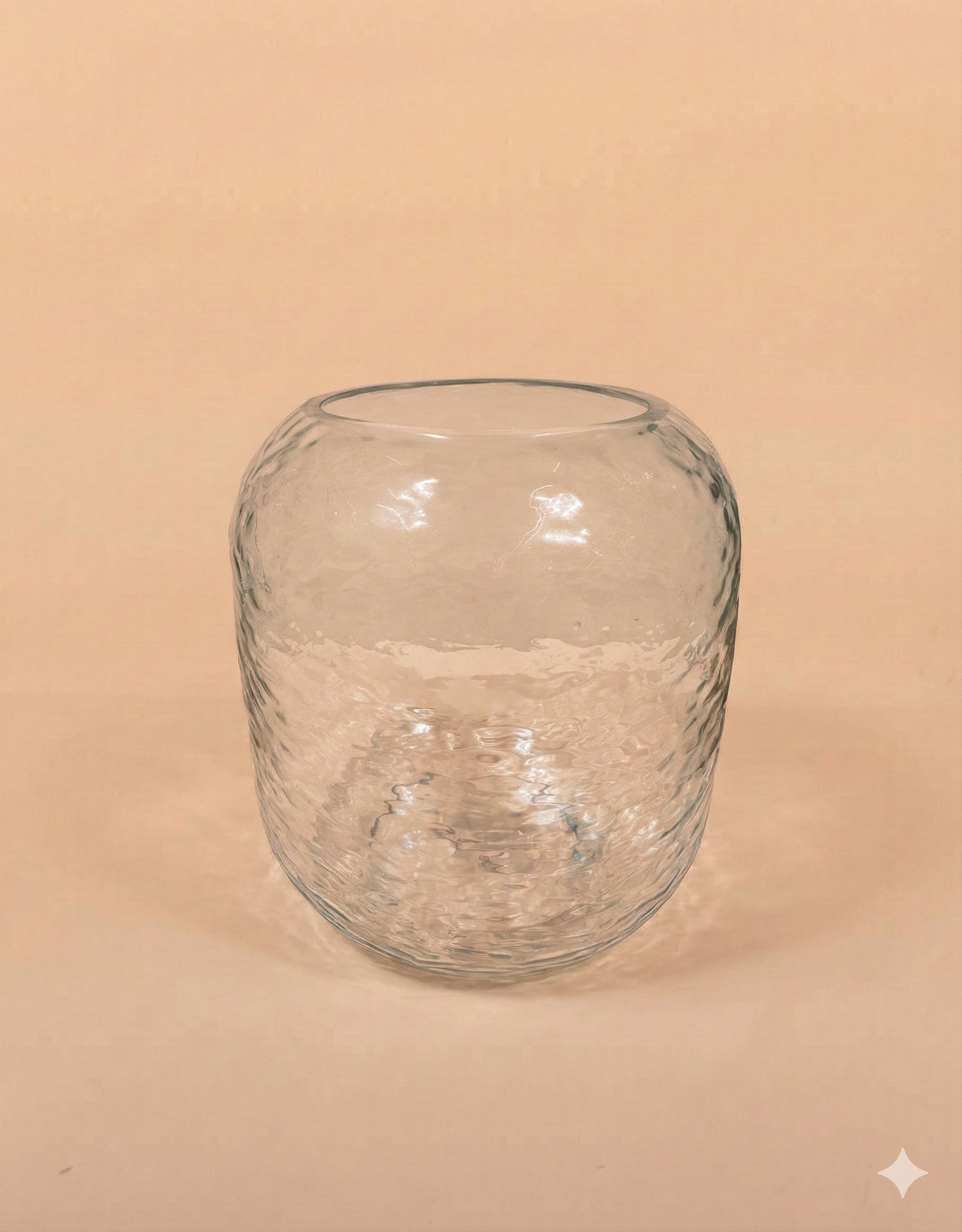Clear glass vase with organic, wavy textured surface and a smooth rounded rim, ideal for flowers or as a decorative accent.