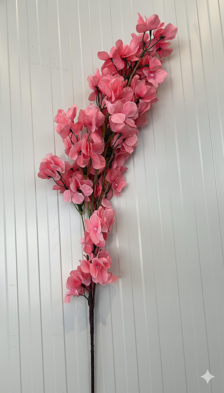 Vibrant artificial hanging plant with lush clusters of soft pink bougainvillea flowers and realistic green stems. Ideal for brightening indoor or sheltered outdoor décor with a pop of color.